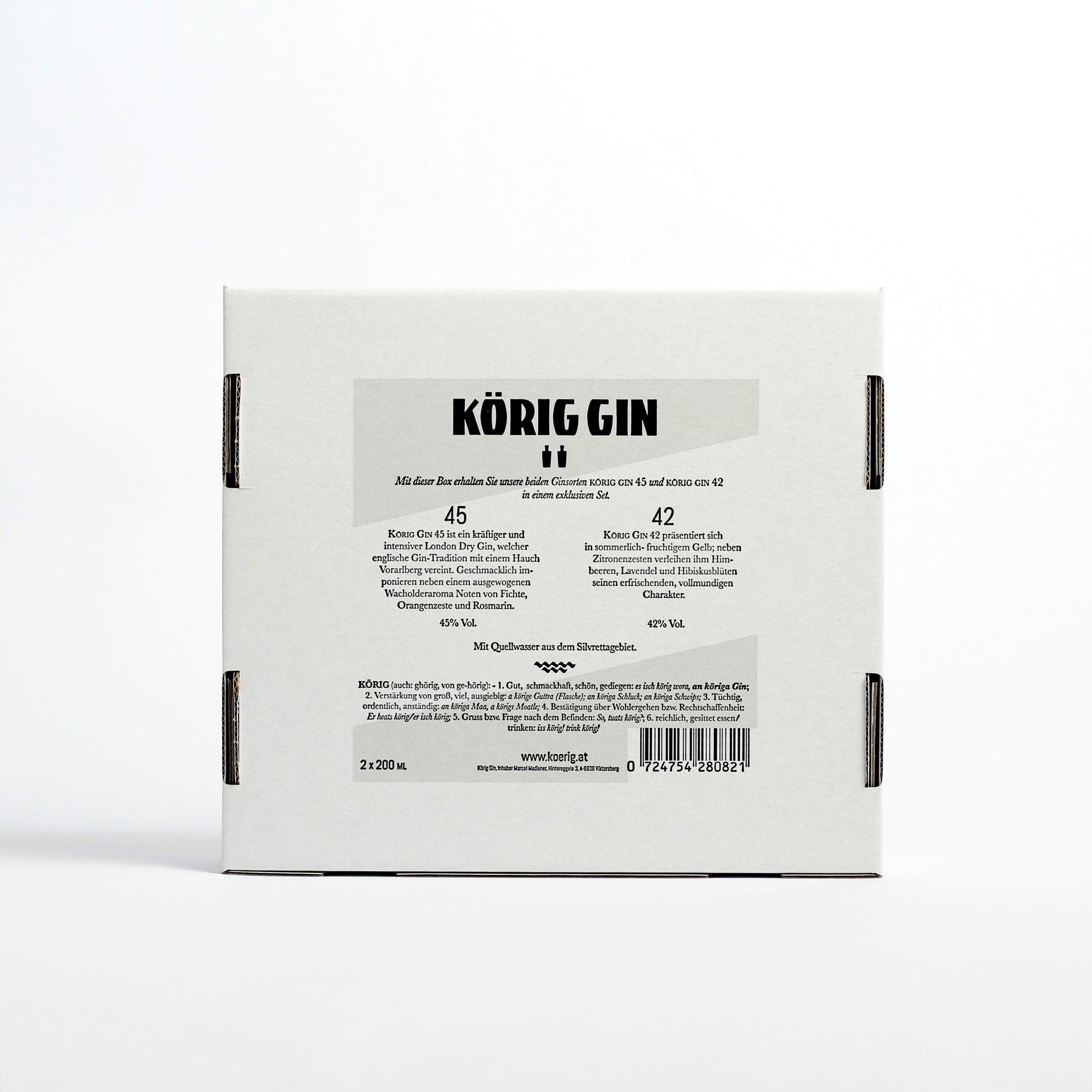 Diese Geschenksbox beinhaltet 200ml vom Körig 45 und 200ml vom Körig 42 und ist somit auch ideal als Probier- und Kennenlernbox geeignet.
